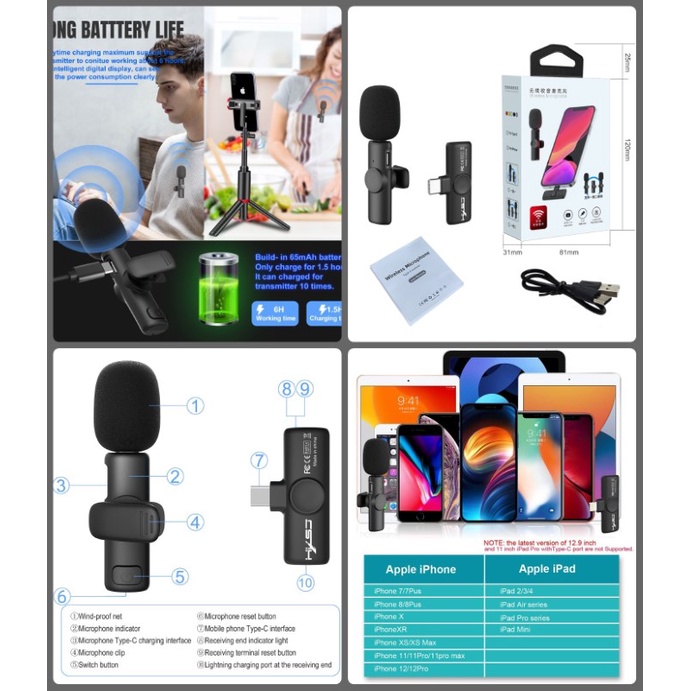 - Thu âm đa hướng 360 đô ,Chip micrô không dây 2.4G chuyên nghiệp với âm thanh chất lượng CD stereo 44,1 ~ 48kHz