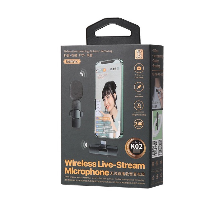 Thiết Bị Âm Thanh > Micro thu âm || Micro không dây hỗ trợ Livestream cho thiết bị cổng USB Type C Lightning Remax K02Còn hàng