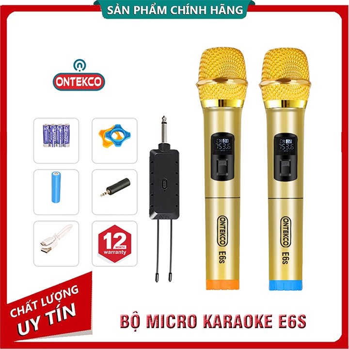 Giới thiệu Micro không dây karaoke Ontekco E6s gold bản cao cấp Chuyên Dành Cho Mọi Loa Kéo, Âm Ly, Tần Số 50, Hát Nhẹ Êm Đa Năng