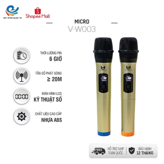 Micro Không Dây Karaoke V-W003, Chuyên Dành Cho Mọi Loa Kéo, Âm Ly, Tần Số 50, Hát Nhẹ Và Êm, bảo hành 12 tháng