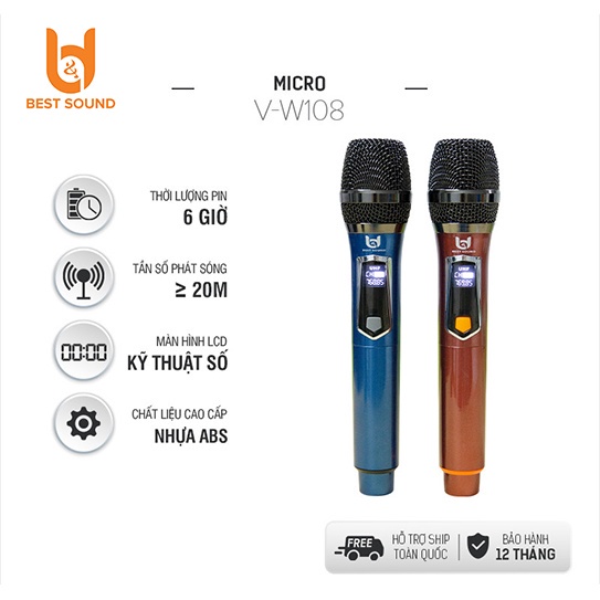MICRO KARAOKE KHÔNG DÂY BEST SOUND W108 PIN SẠC, HÀNG MỚI VỀ 2022👉 SHOP ĐẶT BIỆT LẬP TRÌNH VÀ SETUP TẦN SỐ MẠNH NHẤT, ĐỂ MICRO BẮT SÓNG MẠNH NHẤT, XA NHẤT.