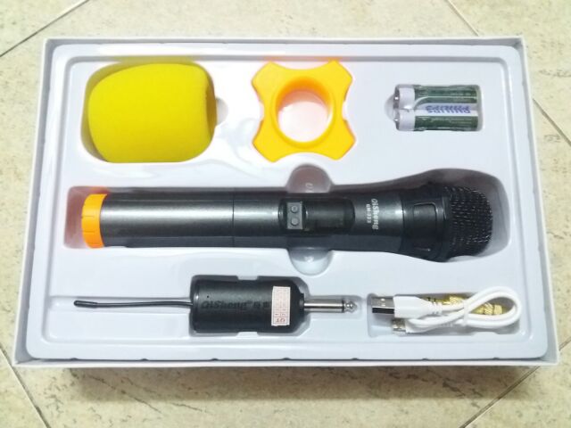 MICRO KHÔNG DÂY QISHENG- Dùng cho các loại đầu karaoke...đặc biệt thích hợp cho các loại loa kéo di động do không cần cắm nguồn điện trực tiếp mà xài pin sạc