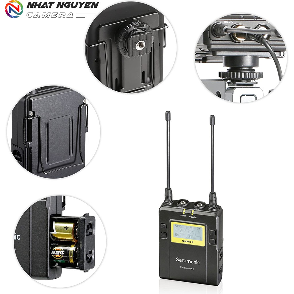 Saramonic UwMic9 RX9 là bộ thu không dây tích hợp có thể gắn vào máy ảnh, RX9 có băng thông RF chuyển mạch rộng, màn hình LCD dễ đọc và đồng bộ hóa hồng ngoại giữa máy phát và máy thu.