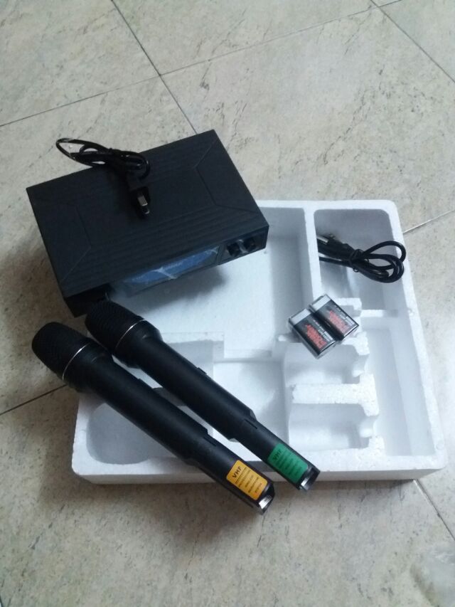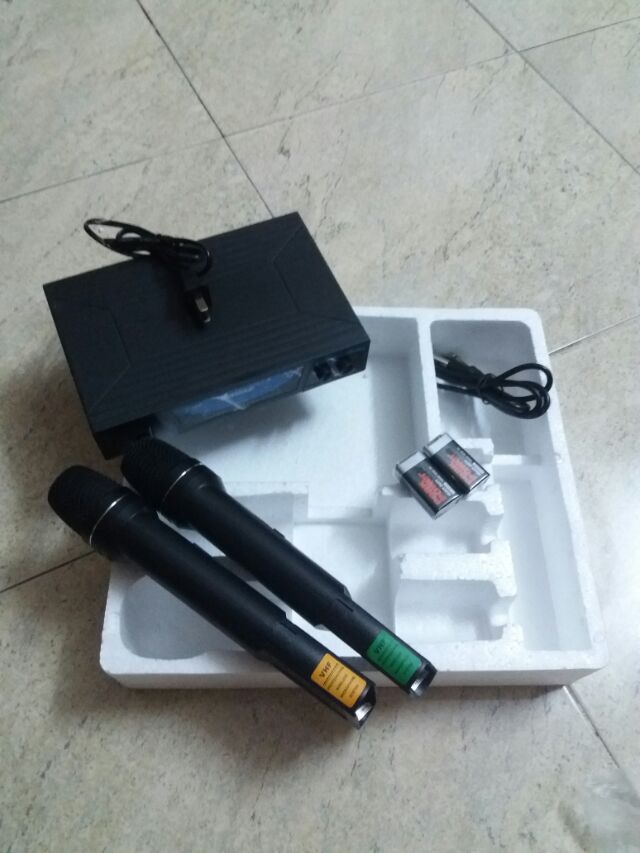 Trọn bộ micro có hai cây micro và bộ thu sóng cho hai micro.