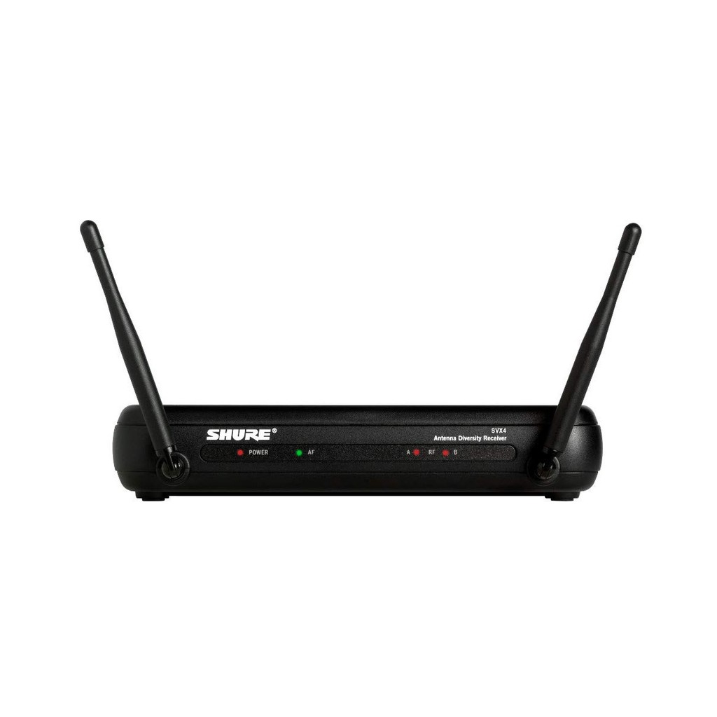+ 1 bộ phát sóng Shure SVX1 có khả năng phát sóng tốt, mạnh mẽ, tương thích với tất cả các micro cài áo Shure, micro cài đầu Shure.