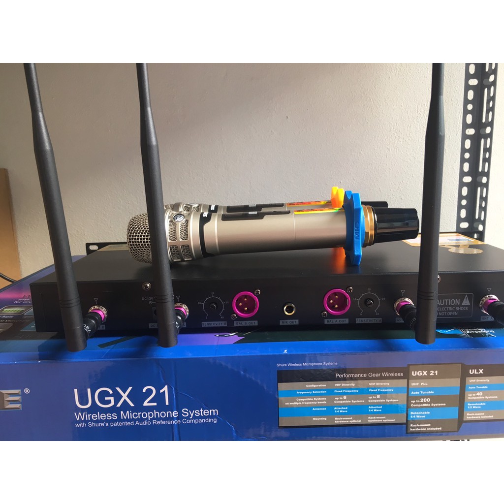 Micro Không Dây SHURE UGX 21 Tự Ngắt, Dò Sóng Chỉnh Tần Số Hiện Đại. Dòng Karaoke Cao Cấp Quán Hát.