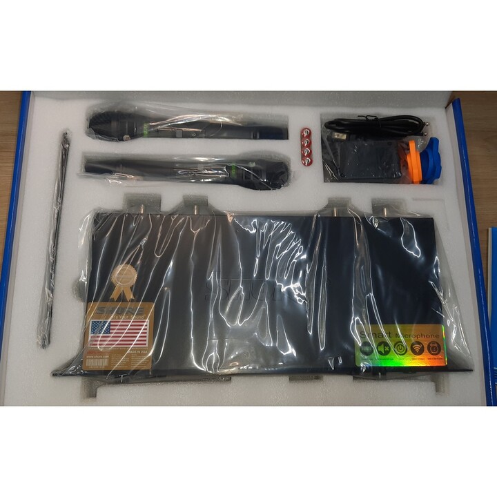 Gồm 2 Mic với sóng UHF dành cho ca hát chuyên nghiệp.