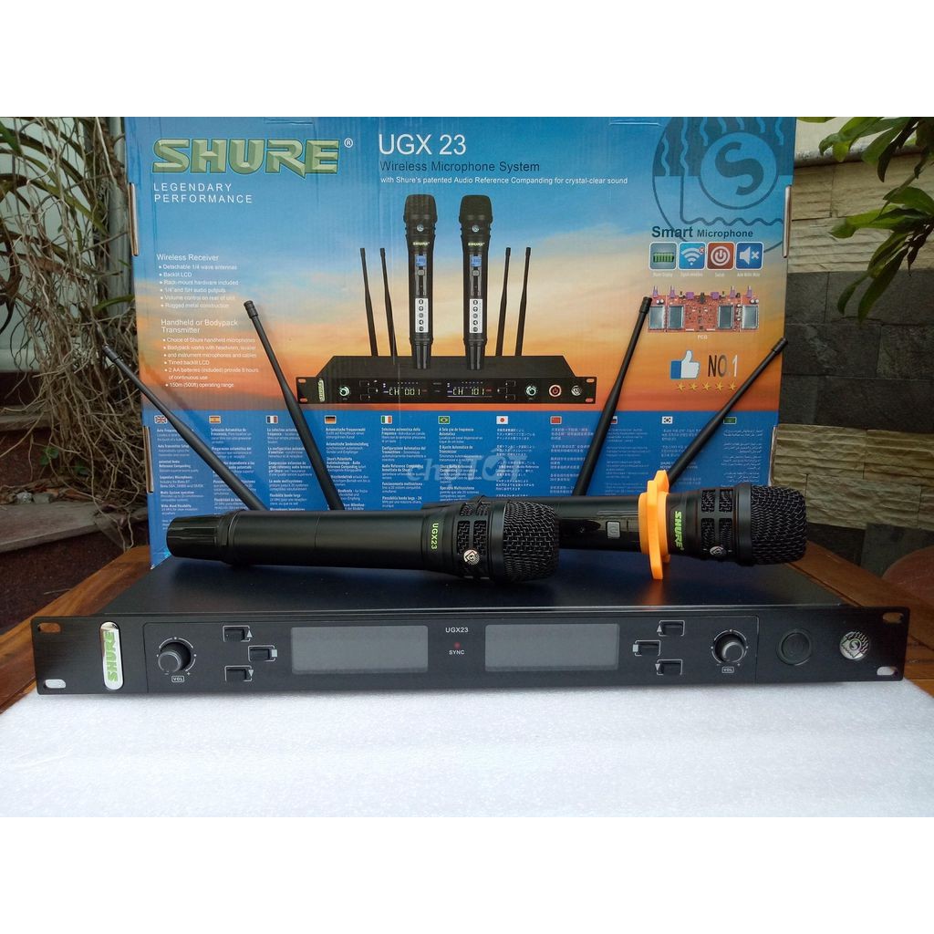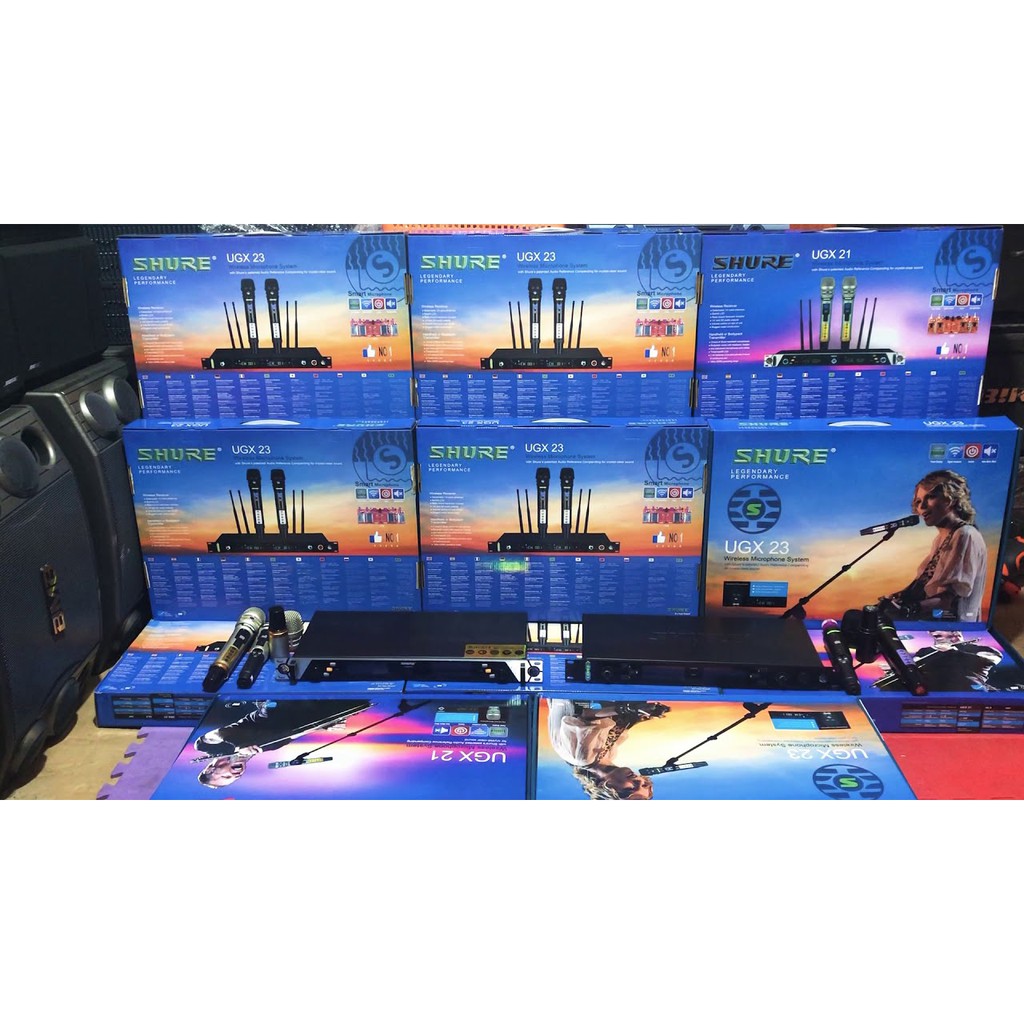 ✳️ MICRO KARAOKE KHÔNG DÂY SHURE UGX 23✳️ Bộ Sản Phẩm bao gồm : Đầu Thu + 2 Tay Micro + Cục Nguồn + 4 Pin + 4 Râu ăng ten + Dây kết nối 6mm + 2 Chống Lăn.