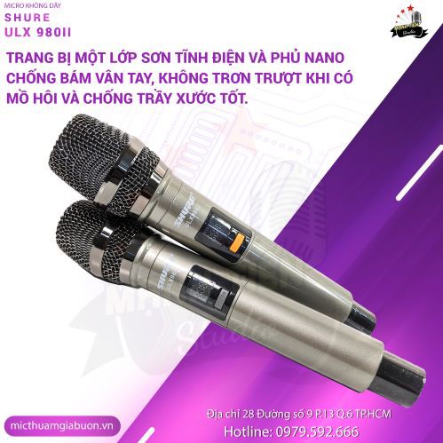 Micro không dây shure ulx980ii bắt sóng xa mạnh mẽ ổn định mic nhé không hú rít độ nhạy thích hợp quán bar, hội trường..