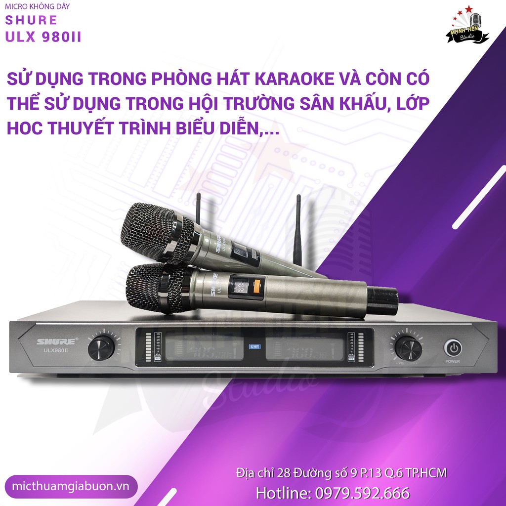 Micro không dây shure ulx980ii bắt sóng xa mạnh mẽ ổn định mic nhé không hú rít độ nhạy thích hợp quán bar, hội trường..