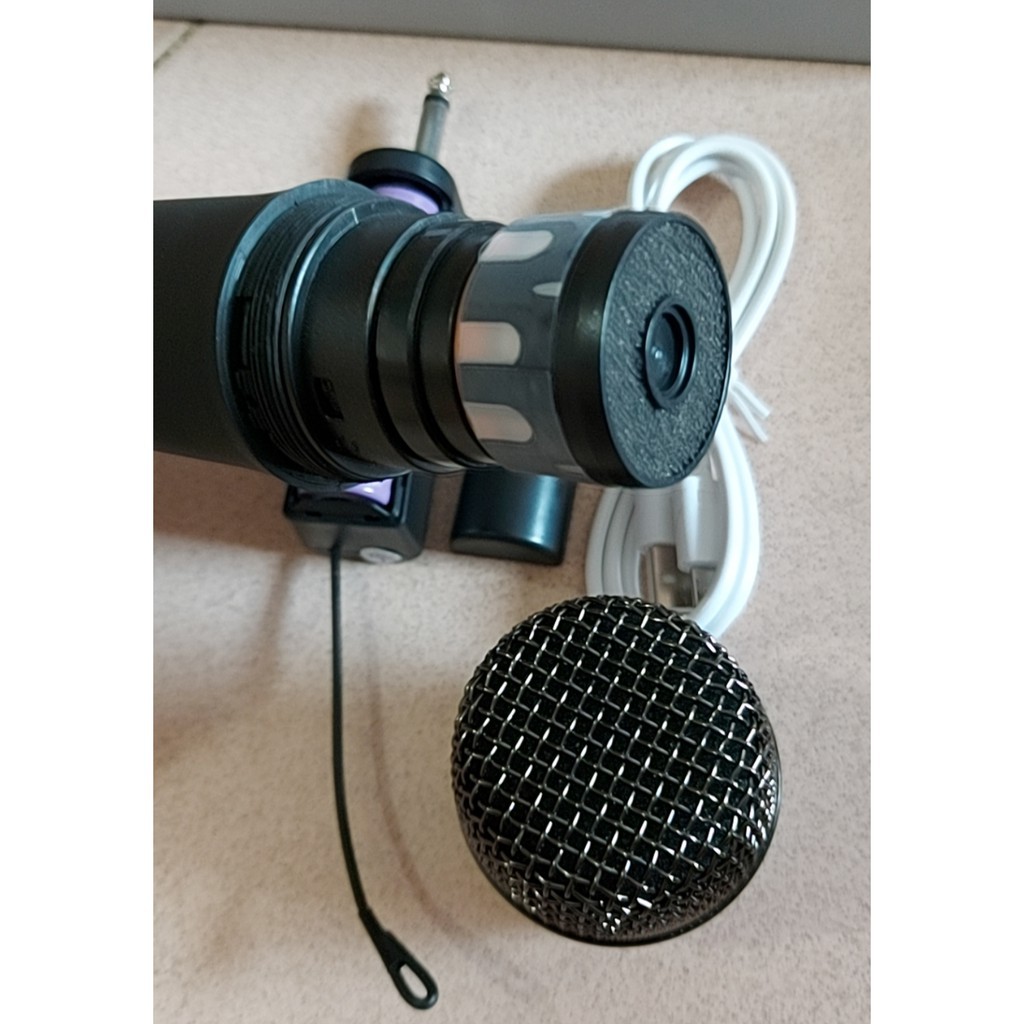 - Phụ kiện: 1 hộp đựng, 1 micro, 1 dây sạc, 1 đầu thu có jack nối 6.5 ( kết nối qua cổng USB và cổng micro )