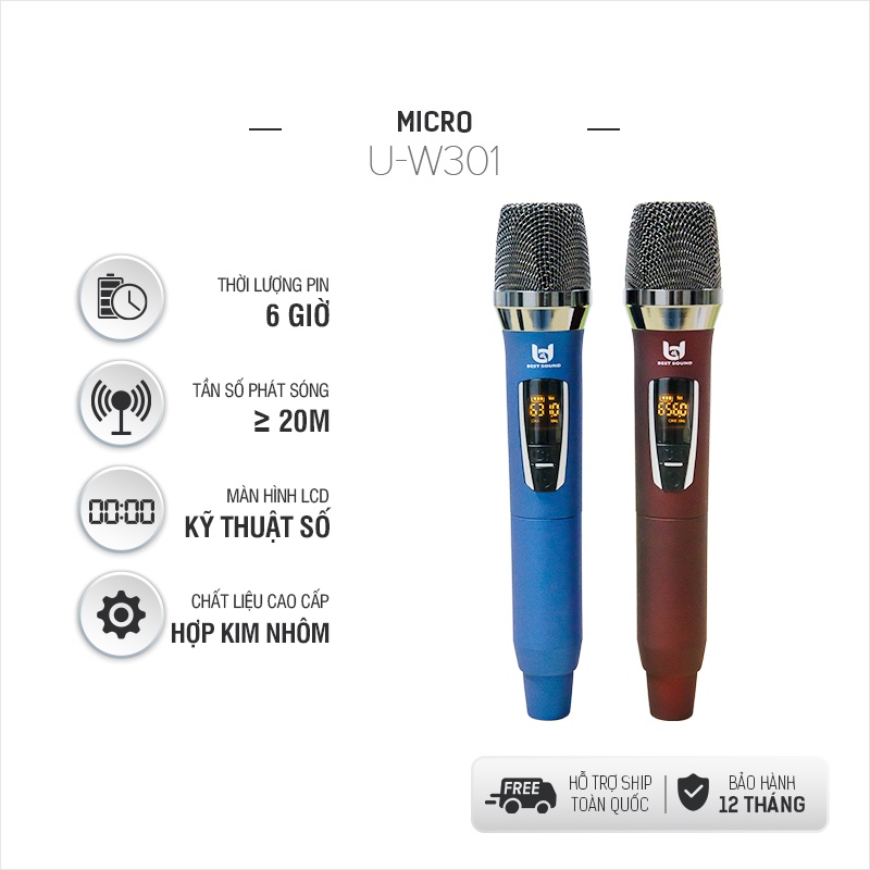 Micro Không Dây U-W301, Tần Số 50, Hát Nhẹ Và Êm, Micro Không Dây Đa Năng bảo hành 12 tháng