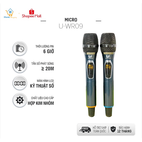 Thiết Bị Âm Thanh > Micro thu âm || Micro Không Dây U-WR09, Chuyên Dành Cho Mọi Loa Kéo, Âm Ly, Tần Số 50, Hát Nhẹ Và Êm, bảo hành 12 thángCòn hàng