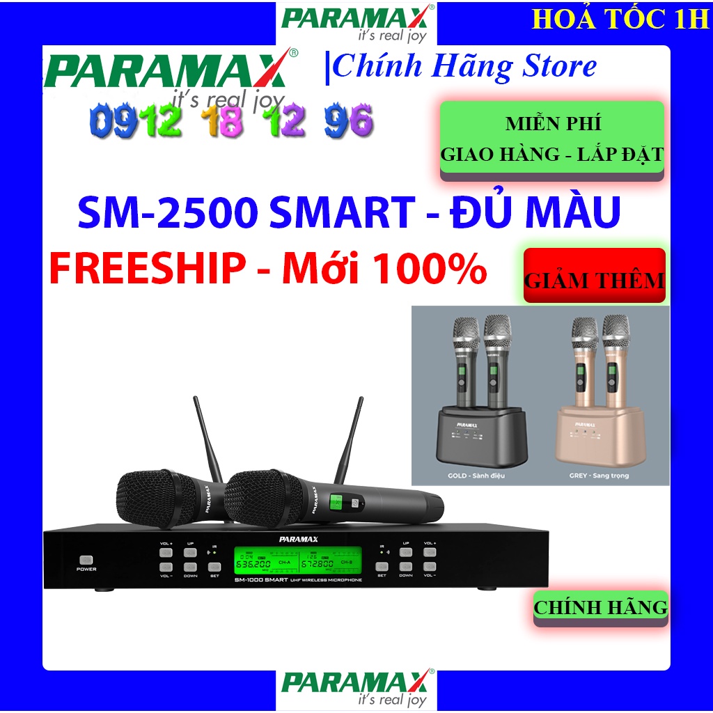 [Mã ELHAMS5 giảm 6% đơn 300K] Micro không dây UHF sạc tự động Paramax SM-2500 SMART
