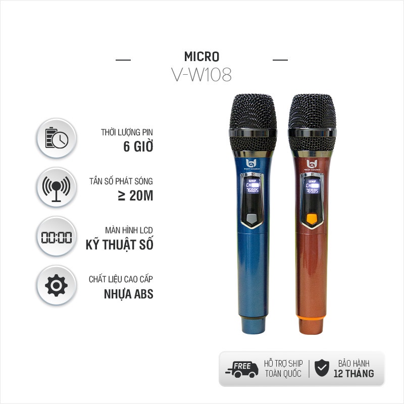Micro Không Dây V-W108, Chuyên Dành Cho Mọi Loa Kéo, Âm Ly, Tần Số 50, Hát Nhẹ Và Êm, bảo hành 12 tháng
