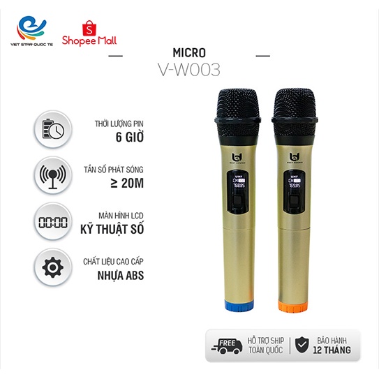 Giới thiệu Micro Không Dây Việt Star Quốc Tế Chuyên Dành Cho Mọi Loa Kéo, Âm Ly, Tần Số 50-Bảo Hành 12 Tháng.