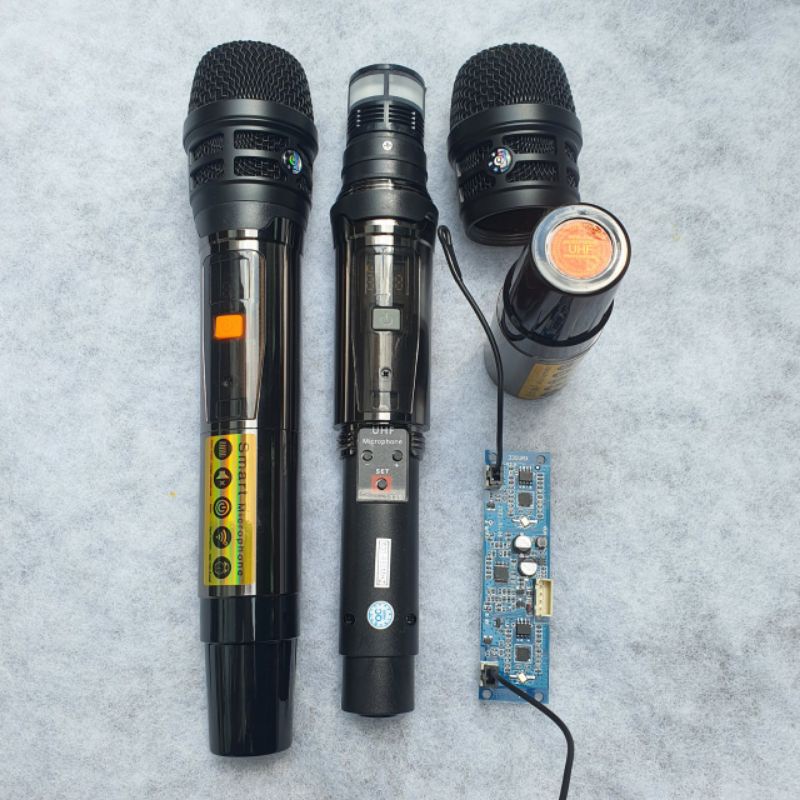 - Micro loa kéo Có thể độ cho vang cũng như âm ly nhôm nguyên khối sóng UHF xa 30M đầu mic nhẹ sét đổi tần số- Thay cho mọi loa kéo trên thị trường 2 mic 1 bo thu nguồn 5 đến 9v