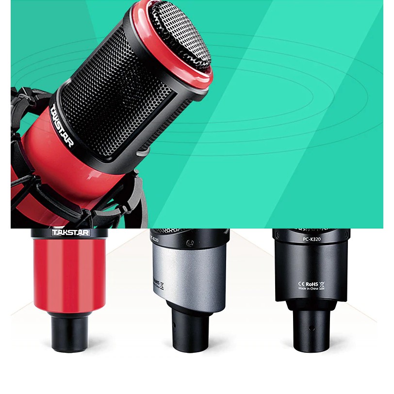 Micro thu âm Takstar PC-K320Micro PC-K320 là micro điện dung hiệu suất cao cho âm thanh chất lượng tốt hơn, độ nhạy của mic cao hơn và phạm vi thu cũng rộng hơn. Takstar PC-K320 áp dụng cho đài phát thanh và truyền hình, thu âm cá nhân, bản thu âm nhạc và hát online hay streaming.