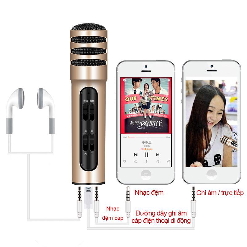 Micro Livestream C7 (đủ phụ kiện) Thu Âm Hát Karaoke Livestream 3 in 1 + Tặng Tai Nghe [HTC7]