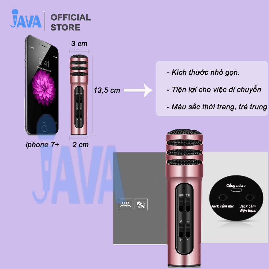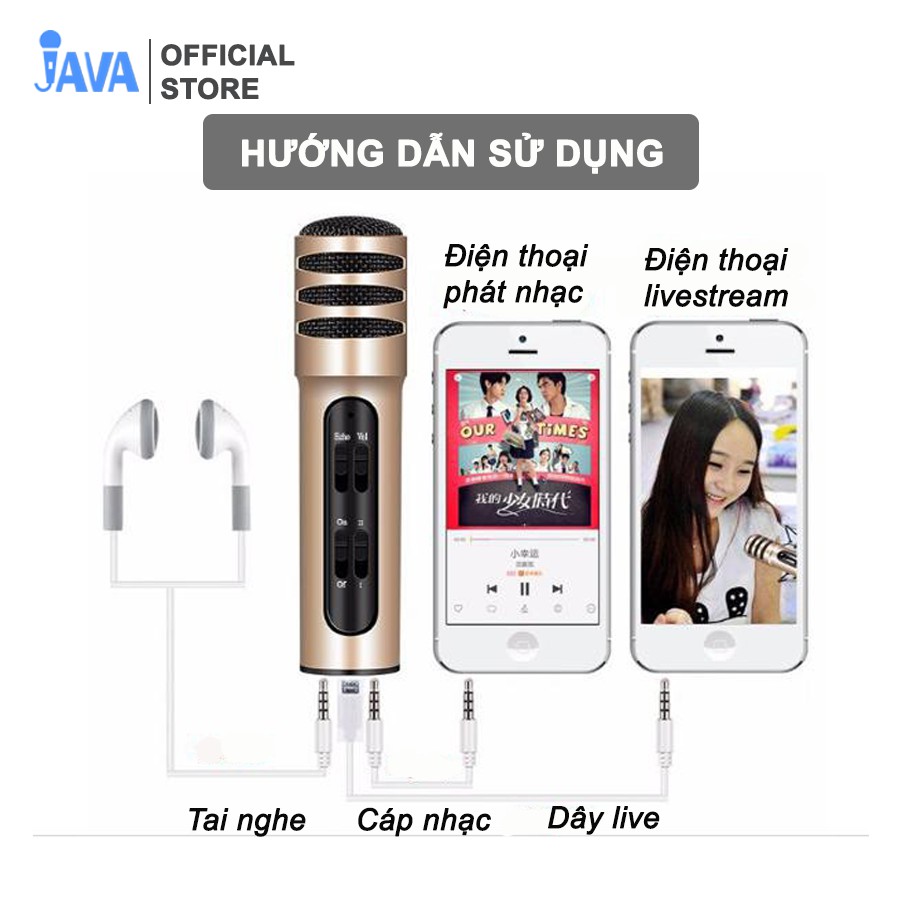 Micro Livestream C7 (Loại 1, đủ phụ kiện) Thu Âm Hát Karaoke Livestream 3 in 1
