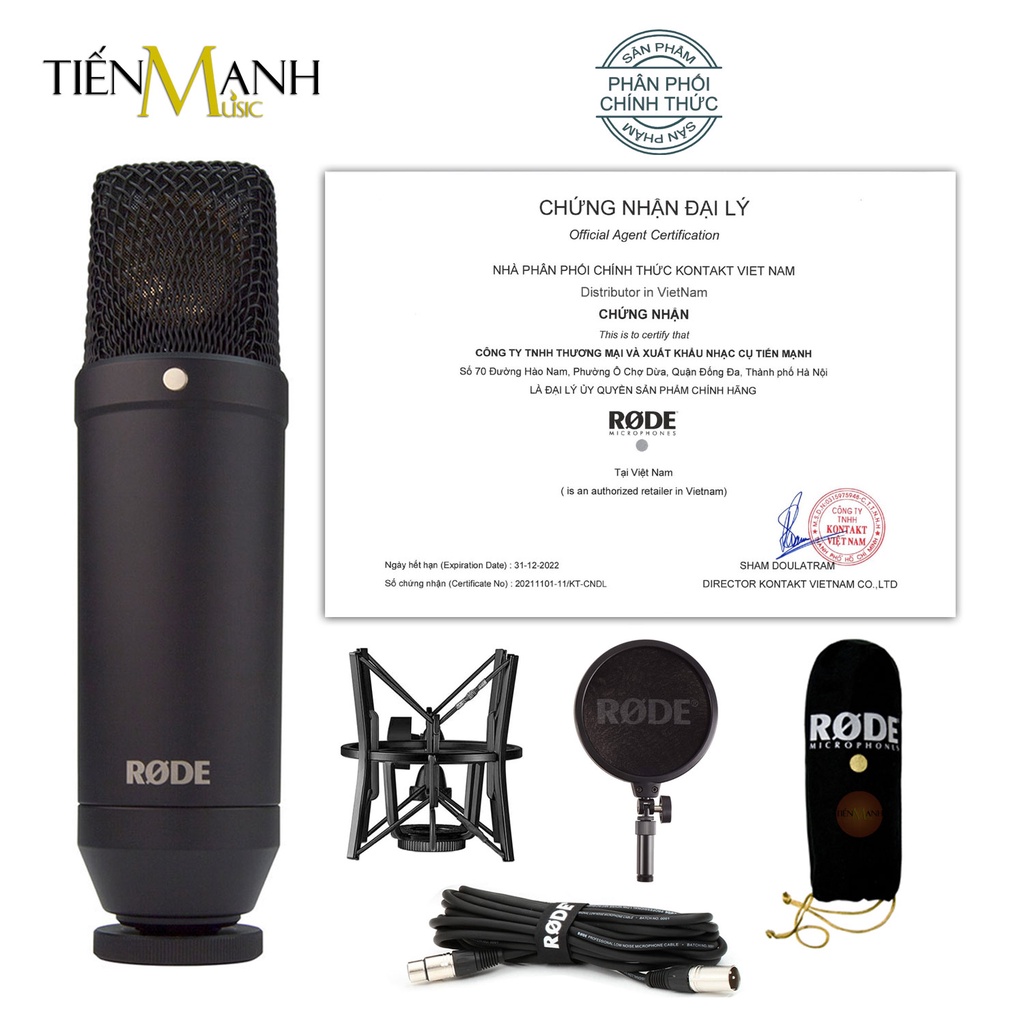 - Bộ Sản phẩm bao gồm: Micro Rode NT1 KIT, Shockmount kèm màng lọc Rode SM6, Cáp XLR-XLR Rode, Túi đựng micro.