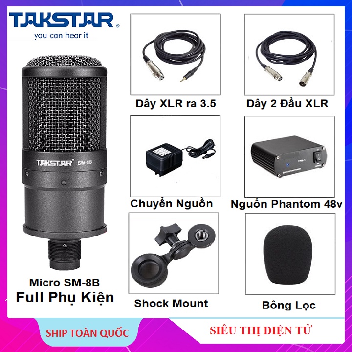 Micro Takstar SM-8B, Tặng Dây Canon - Mic Hát Live Stream Thu Âm Chuyên Nghiệp, Nguồn Phantom 48v, Dây Đầy Đủ