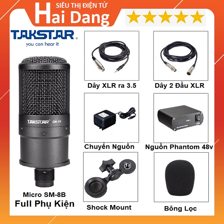 Micro Takstar SM-8B, Thu Âm Chuyên Nghiệp Tặng Dây Canon - Hát Live Stream, Nguồn Phantom 48v, Dây Đầy Đủ Theo Kèm