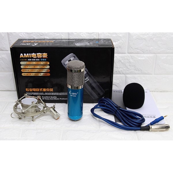 Micro Ami BM-900 sử dụng với âm ly k10 và các loại ly chuyên dụng khácMicro Ami BM-900 là dòng Micro thu âm thông dụng nhất được sử dụng rộng rãi tại thị trường Việt Nam. Với ưu điểm khá mạnh bởi thiết kế nhỏ gọn, tinh tế và vô cùng đẹp mắt, đây là lựa chọn số một của những ca sĩ nghiệp dư, các bạn sinh viên thanh nhạc, các bạn đang luyện thanh, phòng thu âm, các bạn trẻ đam mê ca hát, các bạn Idol của mạng xã hội như Facebook, CCtalk, Talktv, Bigolive, Paltalk...