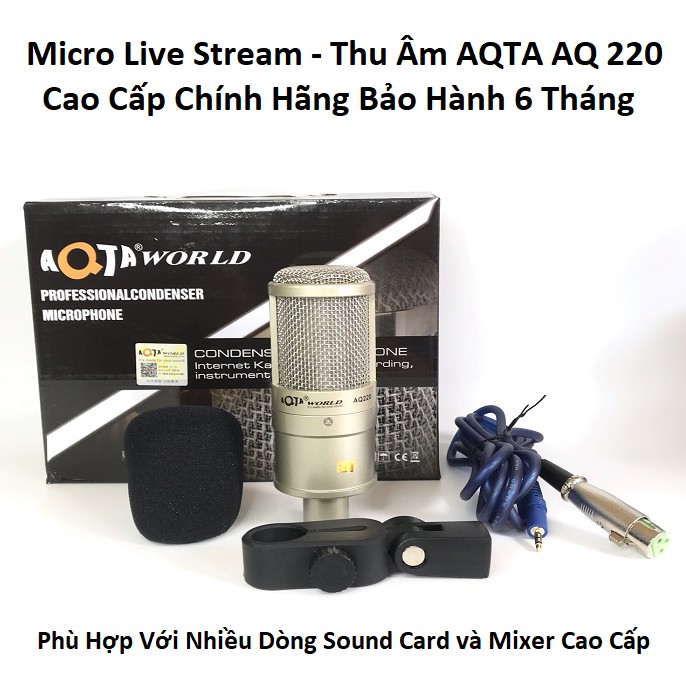 Micro Thu Âm AQTA - AQ220 - Micro Thu Âm Hát Live, Stream game, Cao Cấp Chính Hãng Bảo Hành 6 Tháng
