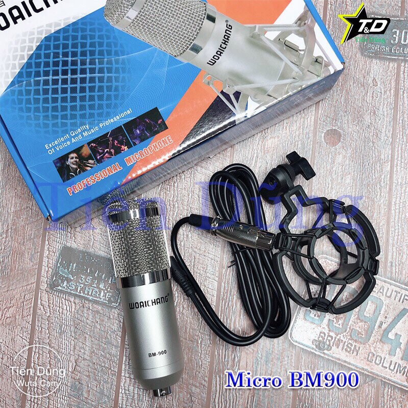 -Micro thu âm BM-900 là micro phân khúc giá dưới 1 triệu dành cho Các bạn trẻ sở hữu niềm say mê ca hát, phục vụ cho các Streamer trên các kênh như TalkTV, IdolTV, Twitch,.... Há trên mobile như Bigo Live, Palktalk. Giá cực rẻ chỉ 990K, chất lượng thu âm phải chăng không kém các micro cao cấp, kết nối trực tiếp máy tính giúp bạn thu âm một phương pháp dễ dàng. Micro BM900 là tuyển lựa rẻ nhất cho bạn. Khi bạn muốn lên thì micro thu âm nay chưa đủ bạn cần phải cần có một Sound Card. Micro thu âm sẽ kết nối Soundcard cho giọng nói bạn ấm hơn, dễ dàng thay đổi rộng rãi hiệu ứng âm thanh khác nhau để thích hợp sở hữu giọng hát của mình, vì âm thanh sau khi qua Sound card sẽ được xử lý hoàn toàn và chuyển qua tín hiệu băng tần (analog) giúp âm thanh chân thực và gần như âm sắc.