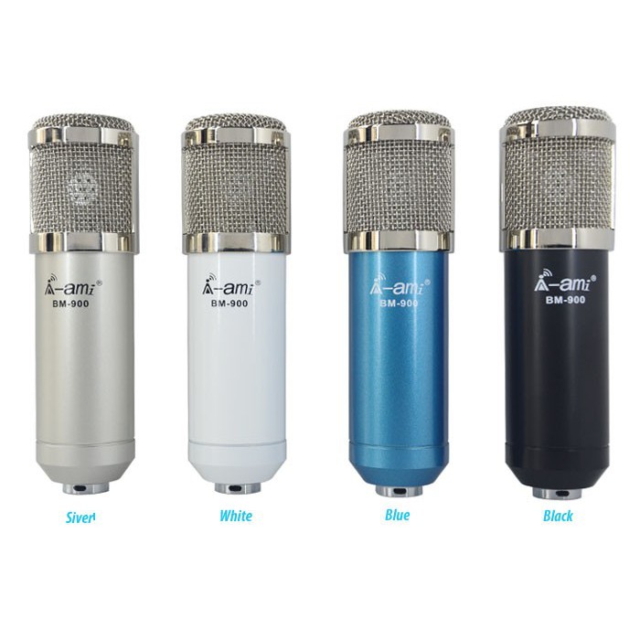 Microphone Ami BM-900 có 5 màu: Trắng - Bạc - Xanh - Đen - Gold, màu sắc rất đa dạng + với thiết kế tinh tế, âm thanh dày và ấm, khả năng hút âm rất tốt, chống nhiễu âm tốt, tích hợp màng lọc âm kỹ thuật số bên trong, sản phẩm rất phù hợp với những bạn có đam mê ca hát, thu âm tại nhà, hát live online, stream trực tiếp trên mạng, hát karaoke trên điện thoại, máy tính bảng, iphone, ipad, Laptop...