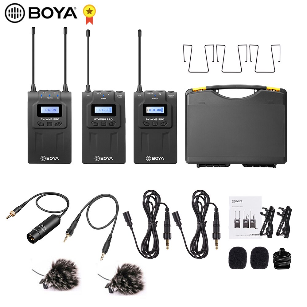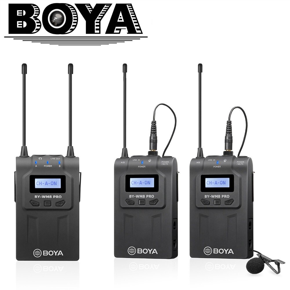 Micro không dây Boya BY-WM8 Pro-K2Boya BY-WM8 Pro-K2 là một hệ thống micro chuyên dụng kép không dây sử dụng tần sóng UHF vô cùng chuyên nghiệp và tiện lợi. Với thiết kế cho ENG, EFP,DSLR video, và dual-Channel có thể làm việc cùng lúc với cả hai máy phát.