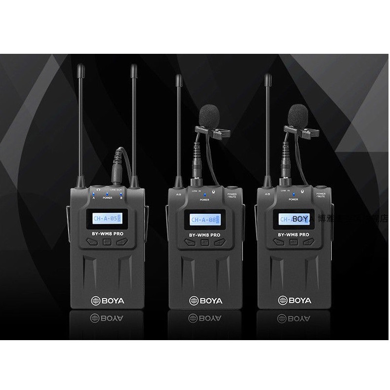 Micro thu âm BOYA BY-WM8 là một hệ thống micro kép không dây sử dụng tần sóng UHF, thiết kế cho ENG, EFP,DSLR video, và dual-Channel có thể làm việc với hai máy phát, hoàn hảo cho các cuộc phỏng vấn.