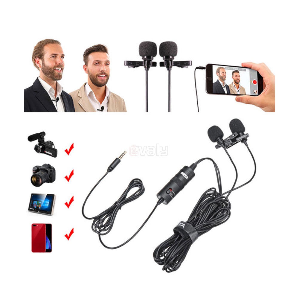 Micro thu âm cài áo BY-M1DM là một dòng sản phẩm mic thu âm kép mới của hãng Boya, giắc cắm 3.5mm sử dụng trên điện thoại thông minh, máy ảnh DSLR, máy quay, máy ghi âm, máy tính và các thiết bị ghi hình khác giúp âm thanh thu được rõ ràng trung thực, cáp dài 4m cho cho mọi góc máy quay phù hợp với quay vlog, talkshow, phỏng vấn 2 người.Hãng sản xuất: BOYA