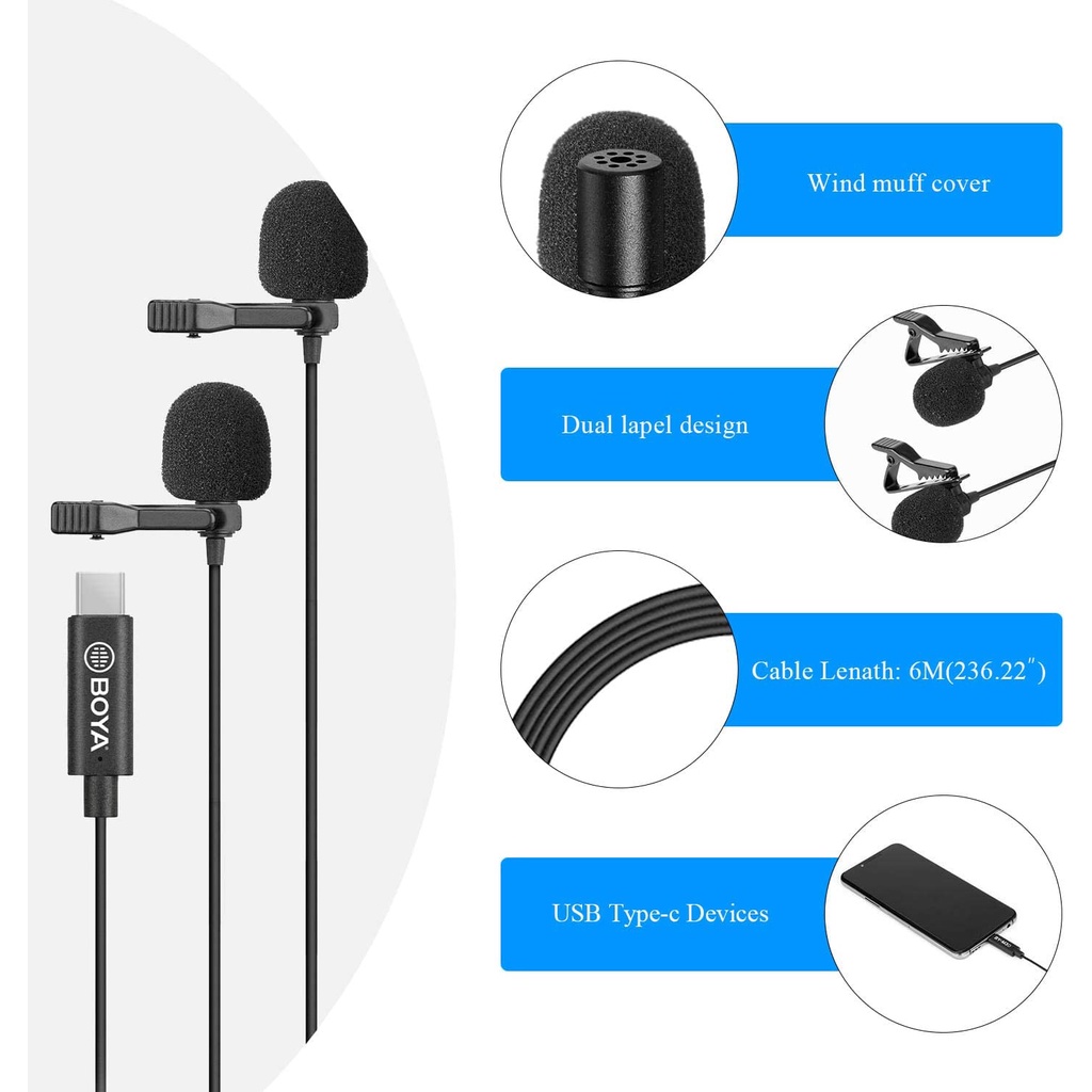 Thiết Bị Âm Thanh > Micro thu âm || BOYA BY-M3D - Hàng Chính Hãng - Mic thu âm cài áo cổng Type-C | Thu cho 2 người | Dành cho điện thoai AndroidCòn hàng