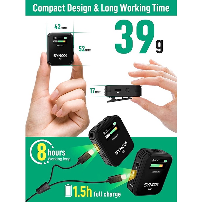 Thiết Bị Âm Thanh > Micro thu âm || Micro thu âm cài áo không dây Synco G2(A2)Còn hàng
