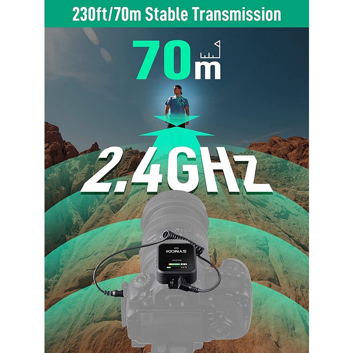 Thuật toán truyền dẫn mã hóa SyncoderTM 2.0 trong micro không dây nhỏ này giúp tăng cường độ ổn định của tín hiệu trong phạm vi hiệu quả 492ft / 150m (Line-Of-Sight) và 164ft / 50m (Non-Line-Of-Sight). Kỹ thuật trải phổ nhảy tần (FHSS) là kỹ thuật trực quan phát hiện vị trí và sau đó chuyển sang tần số tối ưu để không xảy ra xung đột tín hiệu. Điều này cũng giúp bảo vệ sự riêng tư và giảm sự can thiệp.