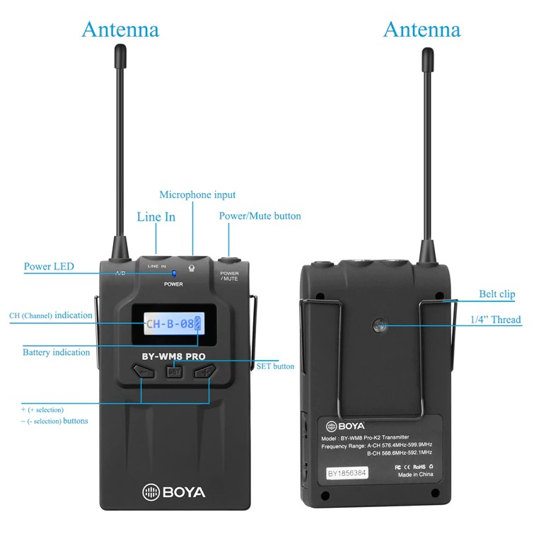 Sử dụng 48 kênh sóng UHF, với dải tần riêng biệt, không trùng sóng, loại bỏ hoàn toàn nhiễu tín hiệu, với thời gian thu phát trực tiếp lên tới 6h liên tục chỉ với 2 viên pin tiểu AA, Boya BY-WM8 là sản phẩm micro không dây cho máy ảnh, máy quay chuyên dụng.