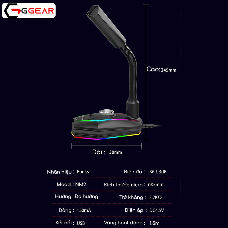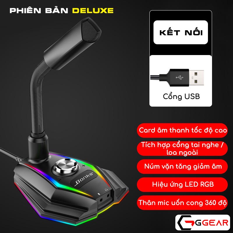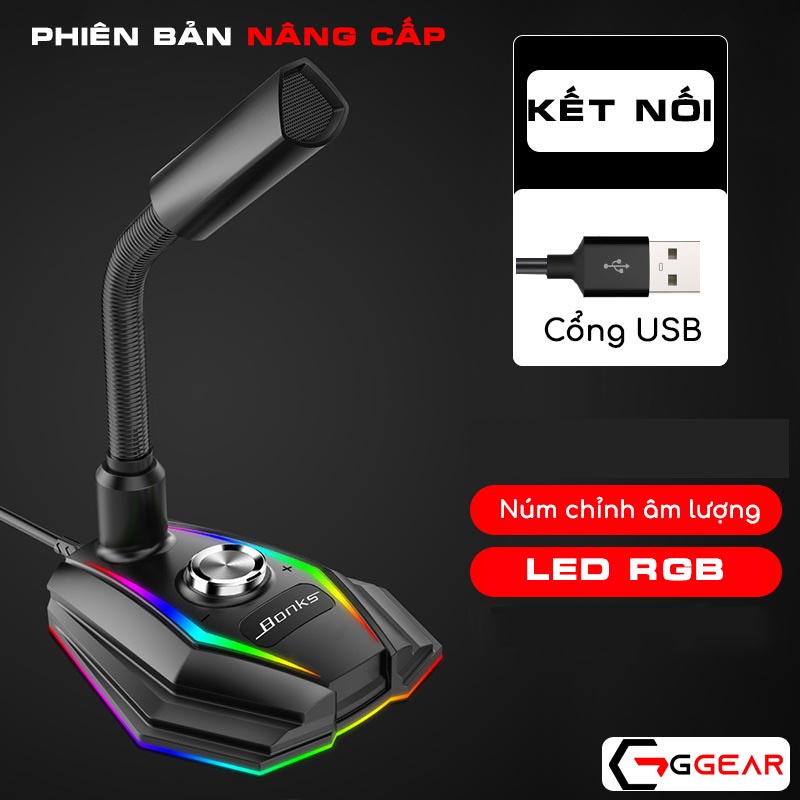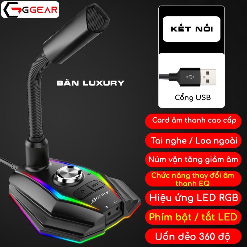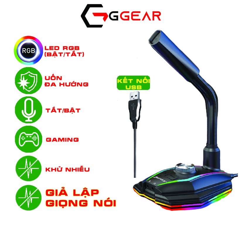 Micro thu âm Ggear MNS2 Hiệu ứng EQ led rgb chống ồn lọc nhiễu âm thanh chân thực livestream học online đàm thoại gaming
