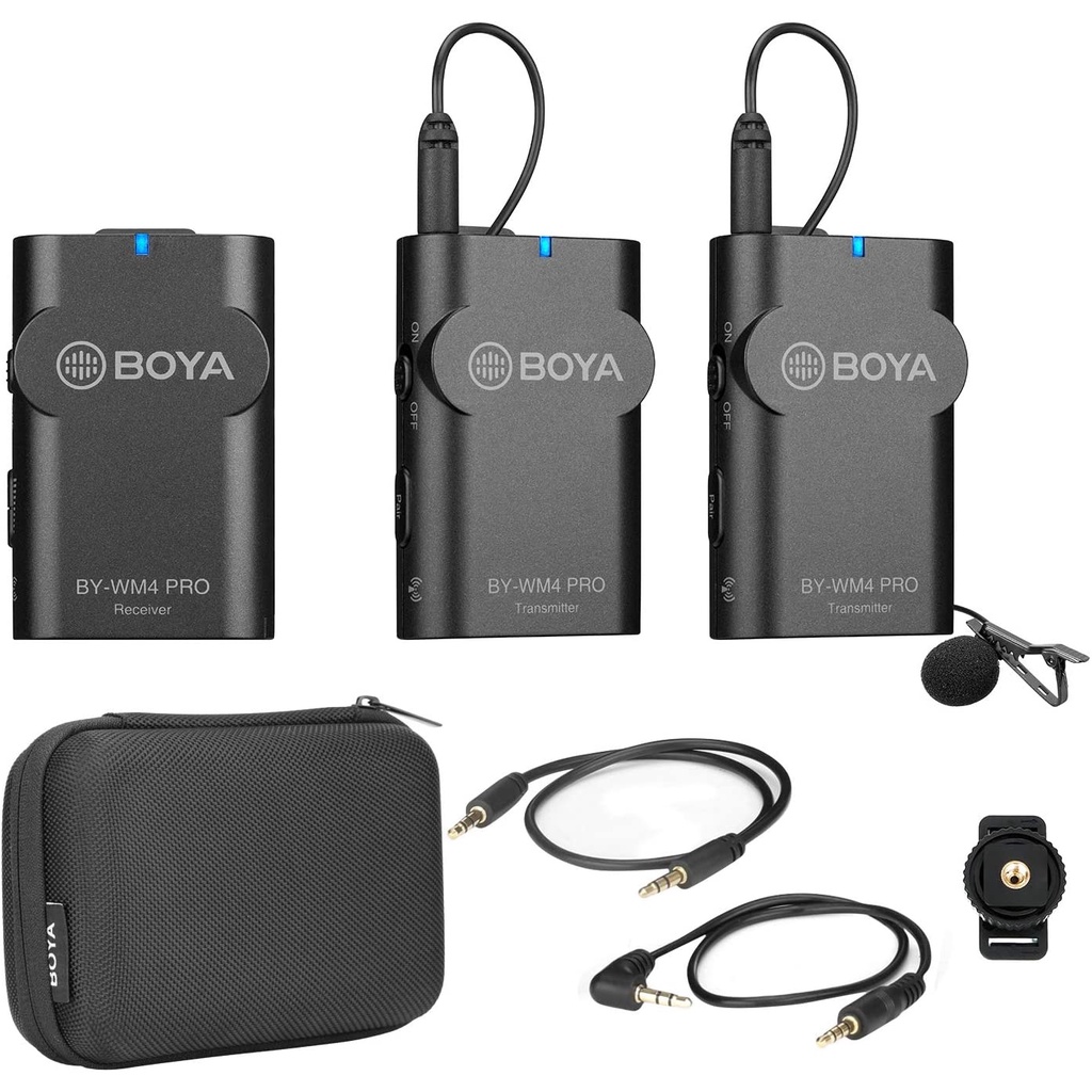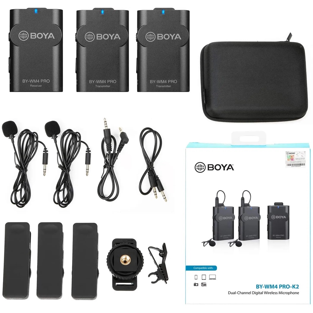 Với sự phát triển của các dòng điện thoại thông minh hiện nay, rất nhiều bạn trẻ hiện có xu hướng quay phim , ghi hình, làm clip thông qua điện thoại tiện dụng của mình. Thế nhưng lại có rất ít các bộ micro thu âm cài áo không dây dành cho điện thoại. Nắm băt được xu hướng trên, BOYA đã cho ra những thiết bị thu âm đáp ứng nhu cầu của thị trường. BOYA BY – WM4 Pro K2 là một hệ thống micro thu âm không dây không những tương thích với các dòng điện thoại thông minh mà còn tương thích với cả máy ảnh DSLR, máy quay phim, PC, …