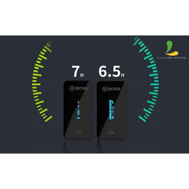 - Dung lượng pin lớn : Bộ micro không dây cài áo Boya BY-XM6-S2 trang bị viên pin Li-on cung cấp thời gian sử dụng cao: 7 tiếng trên máy phát và 6.5 tiếng trên máy thu. Cho phép anh em yên tâm trải nghiệm mà không lo ngại thiết bị hết pin giữa chừng làm gián đoạn công việc.