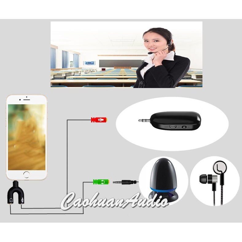Micro thu âm không dây đeo tai, cài đầu, cài áo cho điện thoại - máy tính