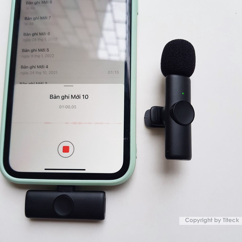 Micro thu âm không dây kẹp áo mini nhỏ gọn bản nâng cấp có chân sạc dùng cho iPhone và điện thoại cổng Type c