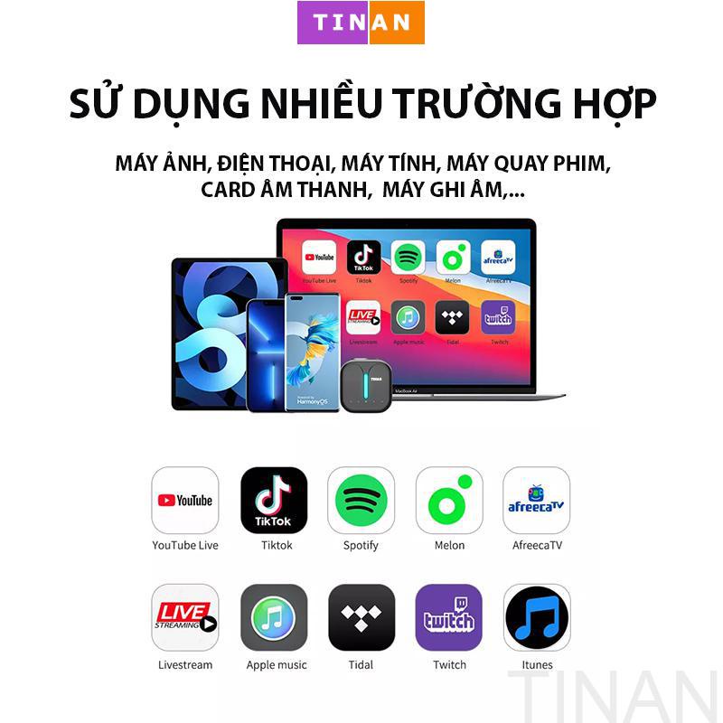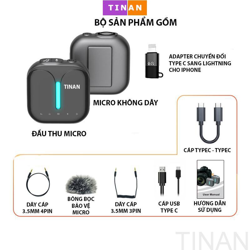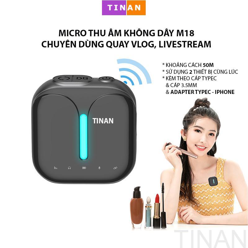 Micro Thu Âm Không Dây M18 TINAN, Chuyên Dùng Quay Vlog, Livestream Nền Tảng Kép, Dùng Cho iPhone, Android, Máy Tính