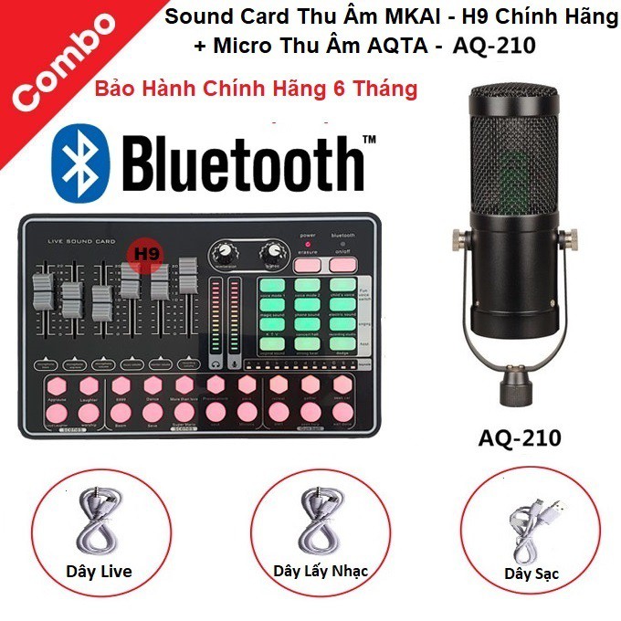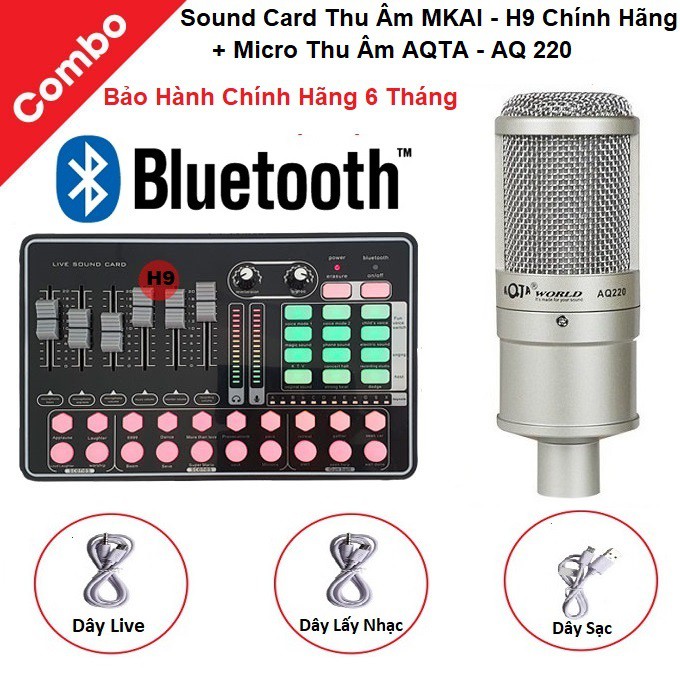 Micro Thu Âm, Livestream AQTA - AQ 220, Sound Card Thu Âm Mkai - H9 Bluetooth, Thu Âm Cực Hay Bảo Hành 6 Tháng