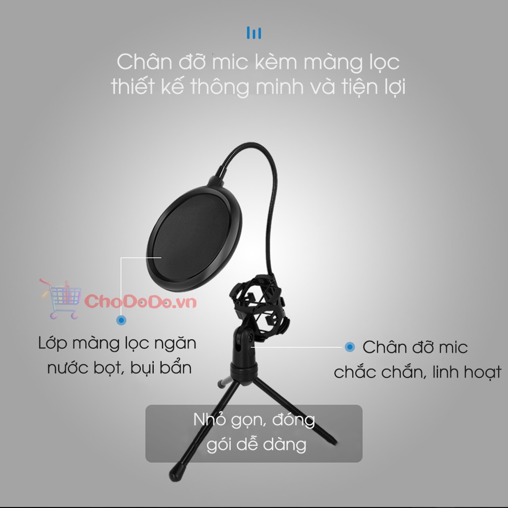 ✔️ Bạn có thể cầm micro trên tay lúc hát hoặc cũng có thể đặt trên chân đỡ kèm màng lọc có sẵn trong phụ kiện để đỡ mỏi tay và nhìn chuyên nghiệp hơn. Màng lọc sẽ giúp bảo vệ micro tránh khỏi nước bọt, bụi bẩn bắn vào lúc đang hát.