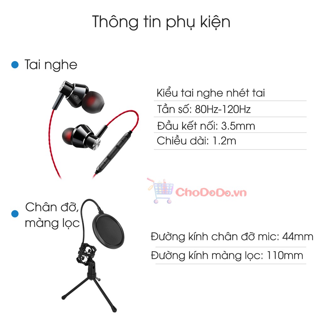 ✔️ Tai nghe dài 1.2m, tần số 80Hz-120Hz
