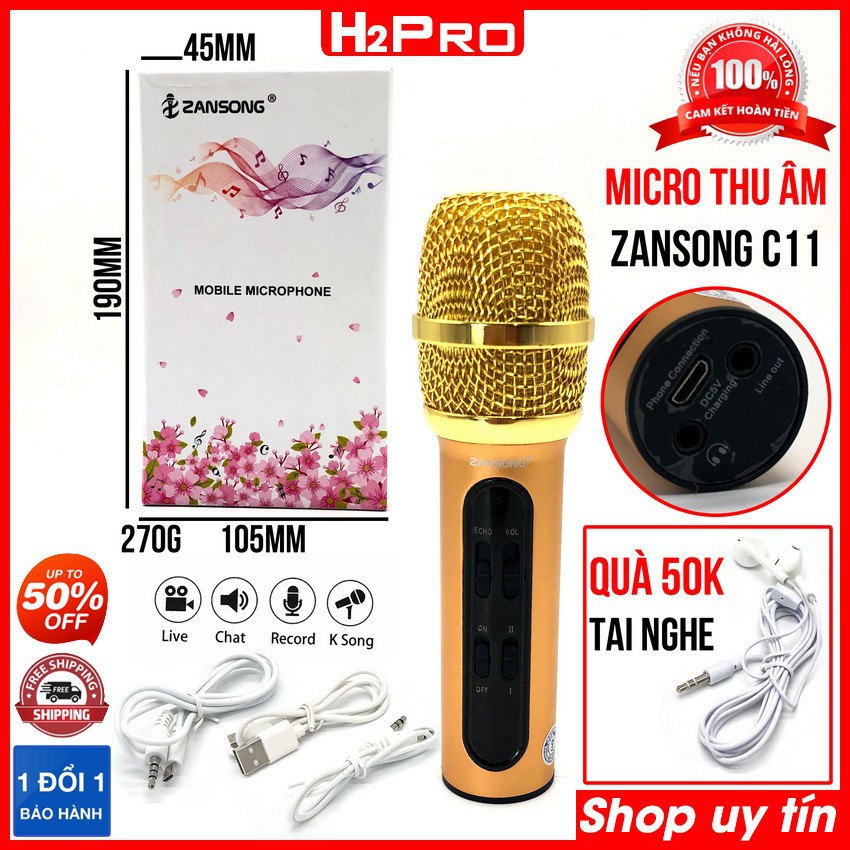 Micro thu âm livestream Zansong C11 H2PRO chính hãng, mic thu âm cao cấp hát trực tiếp trên điện thoại chất âm trong