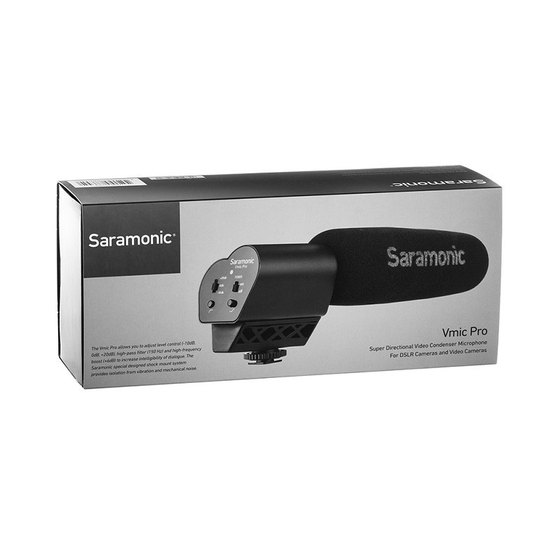 Micro Saramonic Vmic Pro là một dòng micro thu âm chất lượng cao cho máy ảnh DSRL và máy quay. Vmic Pro cho phép bạn điều chỉnh mức điều khiển (-10dB, 0dB, + 20dB), bộ lọc thông cao (150 Hz) và tần số cao (+ 6dB) để bắt được âm thanh tốt hơn trong mọi môi trường.THÔNG SỐ KỸ THUẬT: