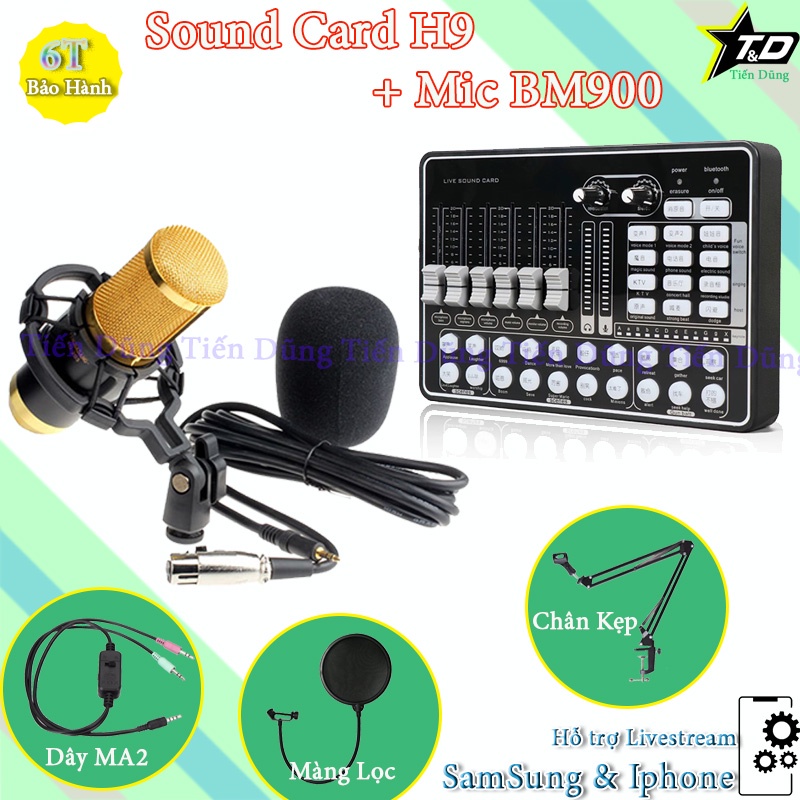 Micro thu âm sound card h9 mic bm900 chân màng dây live stream ma2- Mic thu âm sound card h9 có auto-tune.SHOP XIN KÍNH CHÀO QUÝ KHÁCH